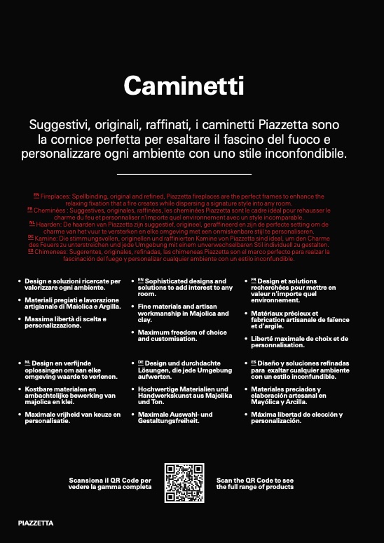 Haarden: De haarden van Piazzetta zijn suggestief, origineel, geraffineerd en zijn de perfecte setting om de