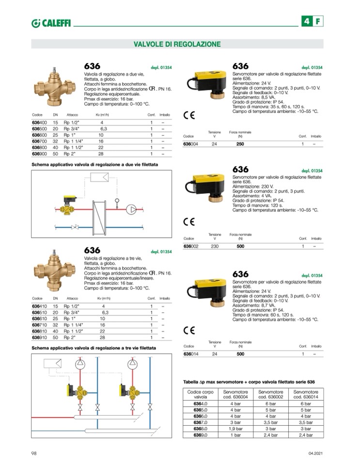 Tabella Δp max servomotore + corpo valvola filettato serie 636
