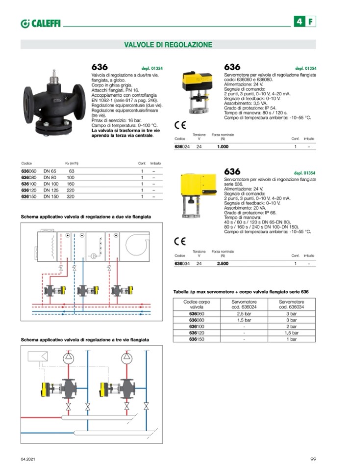 Tabella Δp max servomotore + corpo valvola flangiato serie 636