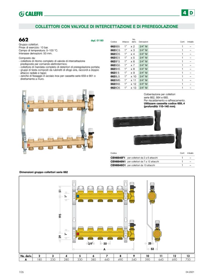 Dimensioni gruppo collettori serie 662