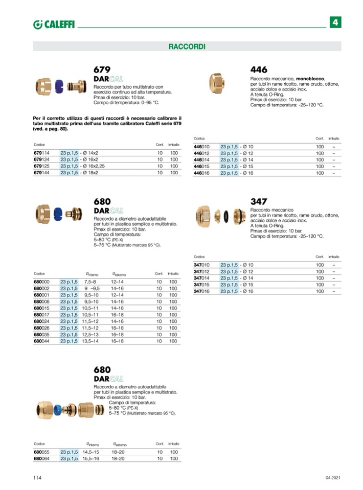 Per il corretto utilizzo di questi raccordi è necessario calibrare il