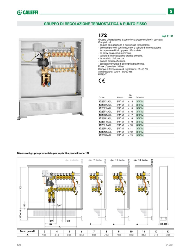 Dimensioni gruppo premontato per impianti a pannelli serie 172
