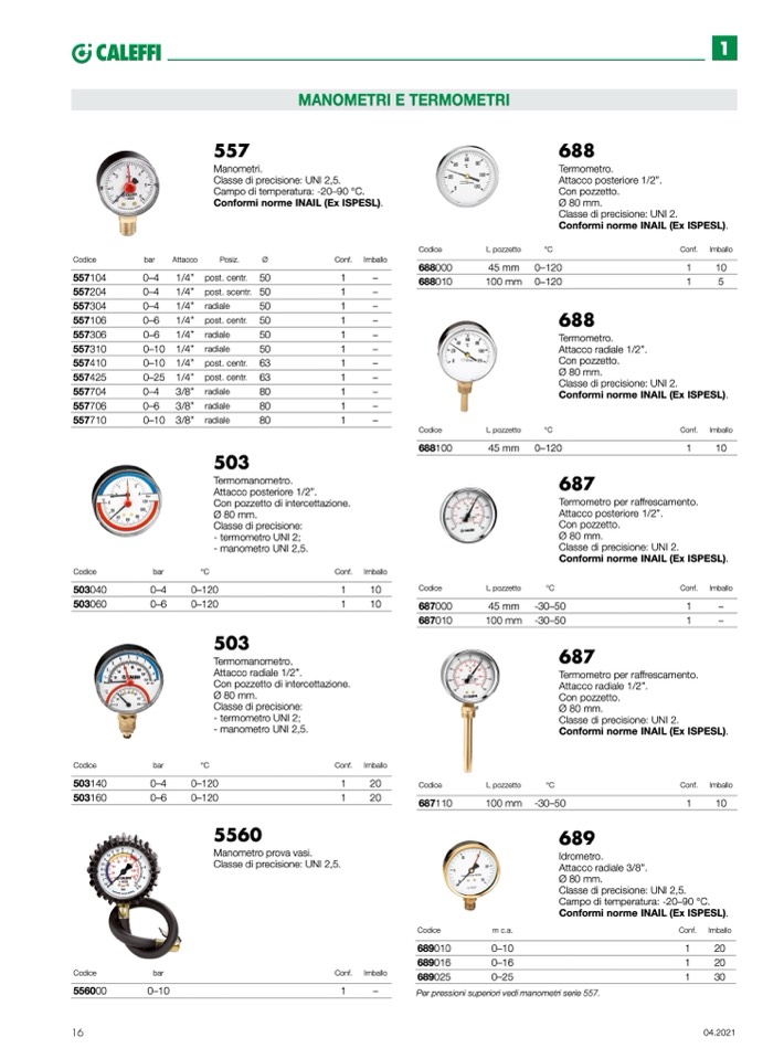 Per pressioni superiori vedi manometri serie 557.