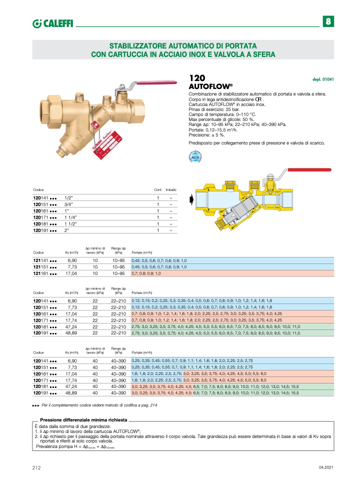 Combinazione di stabilizzatore automatico di portata e valvola a sfera.
