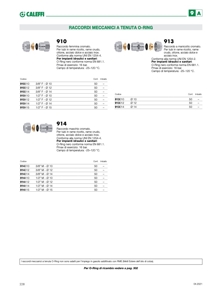 I raccordi meccanici a tenuta O-Ring non sono adatti per l’impiego in gasolio addittivato con RME (Metil Estere dell’olio di colza).