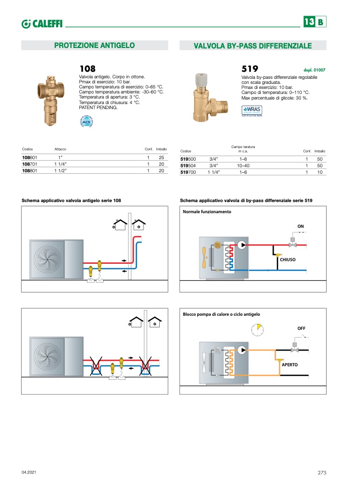 Schema applicativo valvola antigelo serie 108