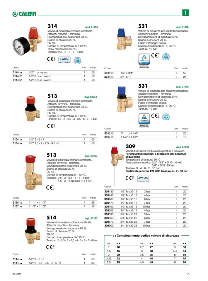 Certificate a norma EN 1490 tarature: 4 - 7 - 10 bar.