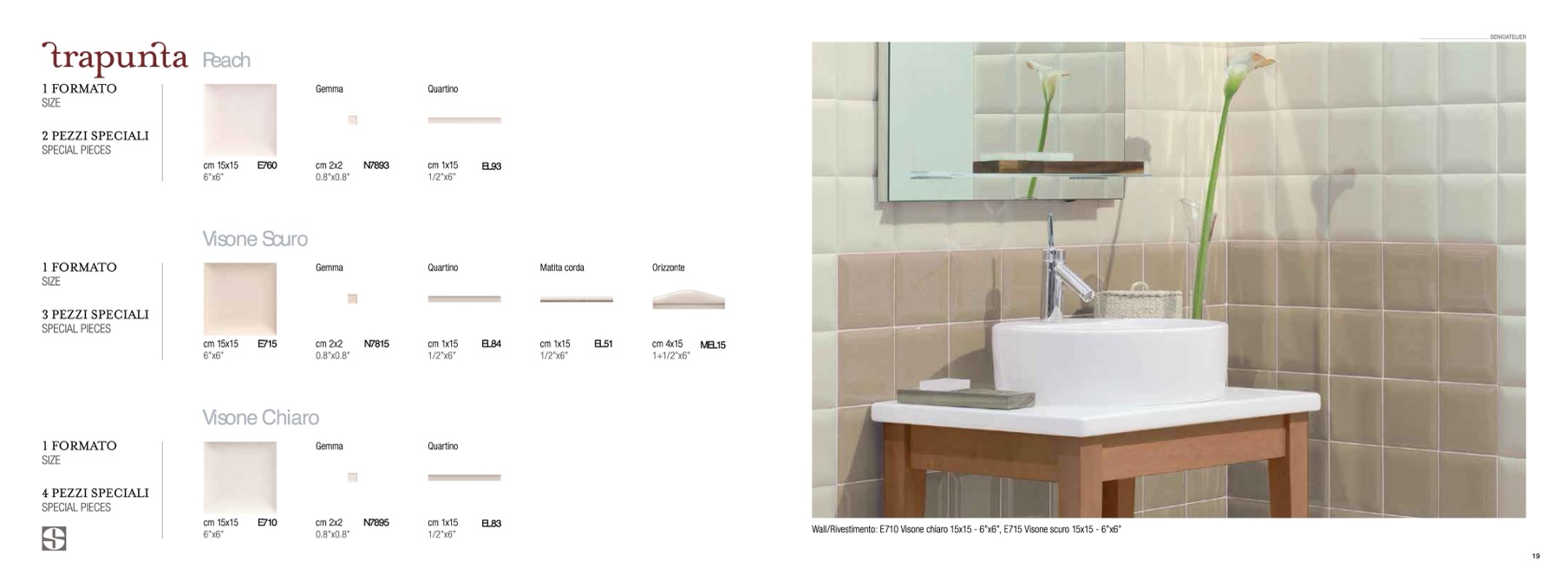 Wall/Rivestimento: E710 Visone chiaro 15x15 - 6”x6”, E715 Visone scuro 15x15 - 6”x6”
