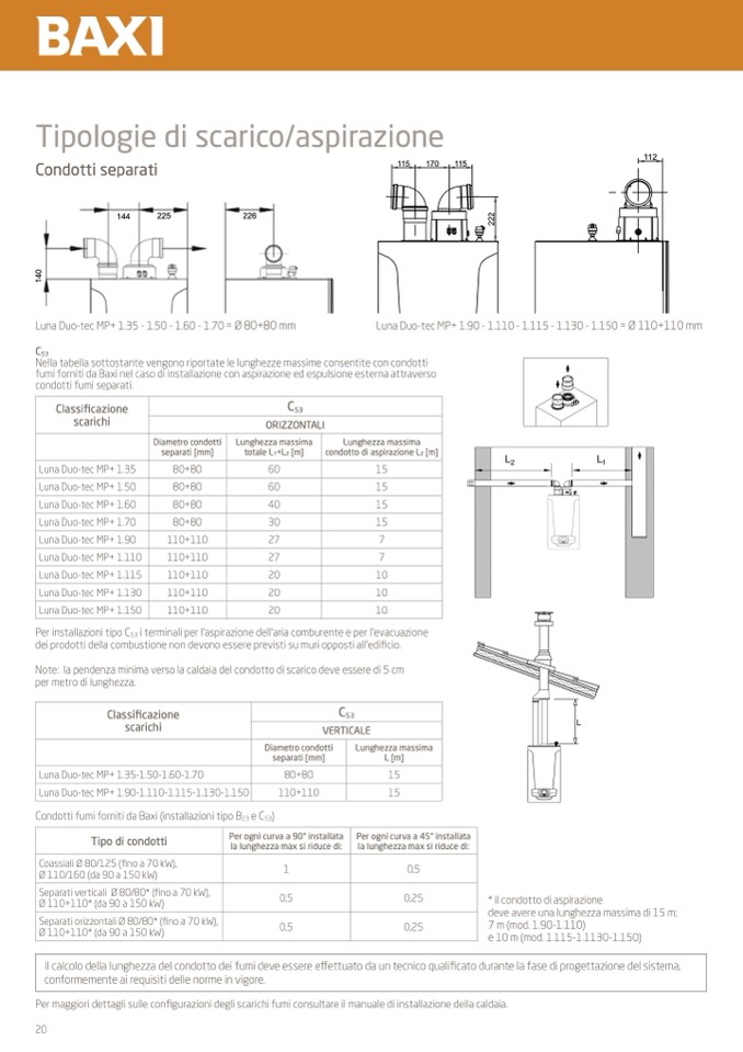 fumi forniti da Baxi nel caso di installazione con aspirazione ed espulsione esterna attraverso