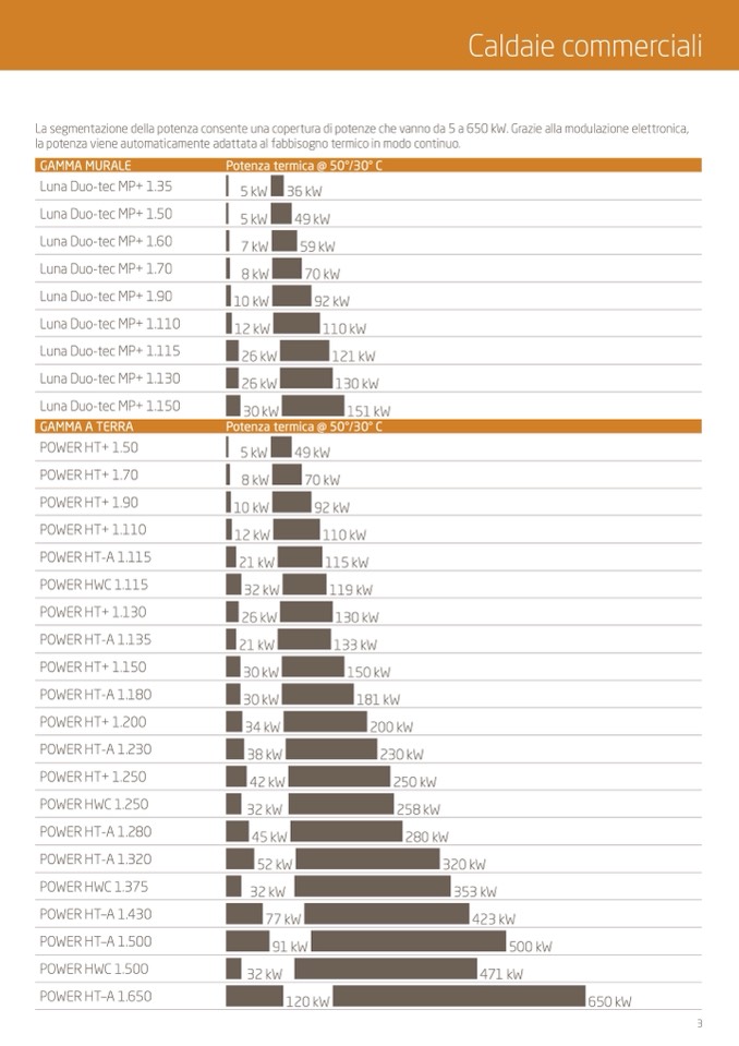 La segmentazione della potenza consente una copertura di potenze che vanno da 5 a 650 kW. Grazie alla modulazione elettronica,
