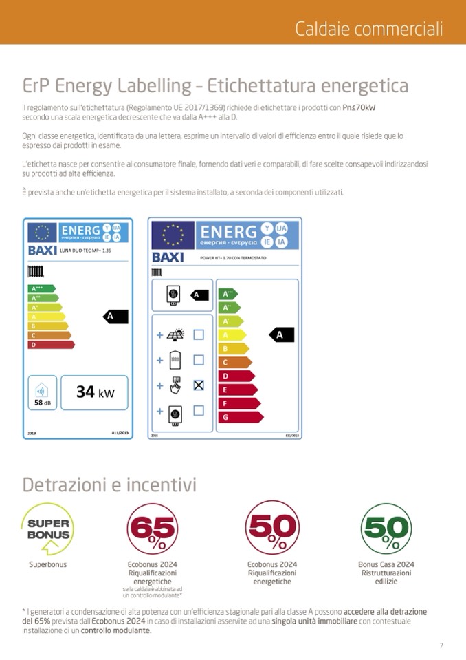 È prevista anche un’etichetta energetica per il sistema installato, a seconda dei componenti utilizzati.