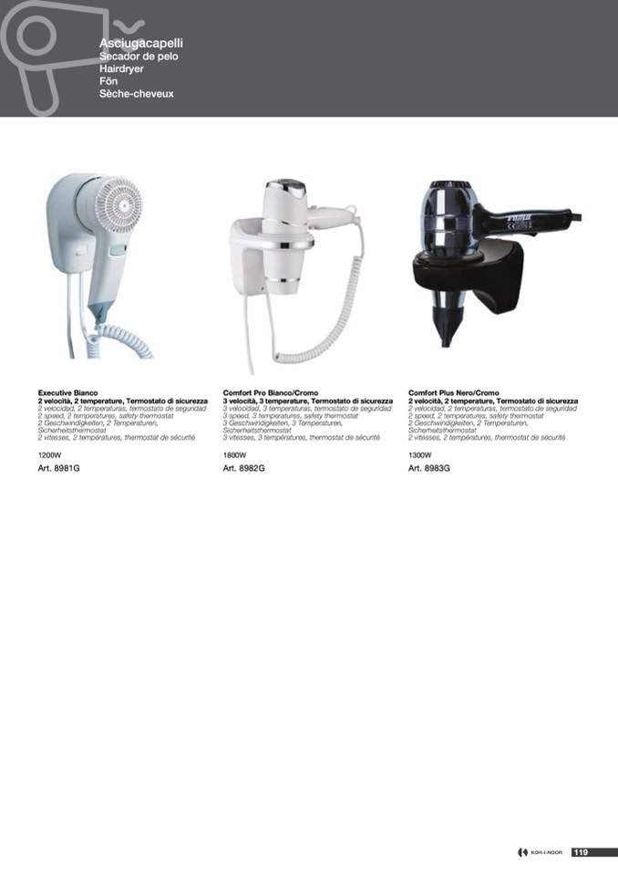 • Cavo spiralato flessibile tra l’asciugacapelli e la base