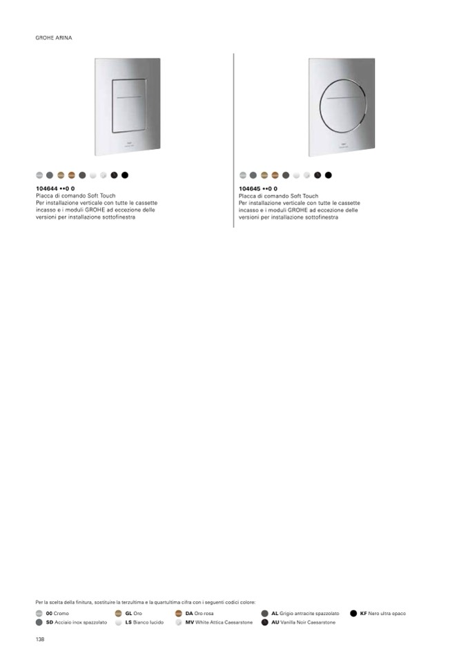 Per la scelta della finitura, sostituire la terzultima e la quartultima cifra con i seguenti codici colore: