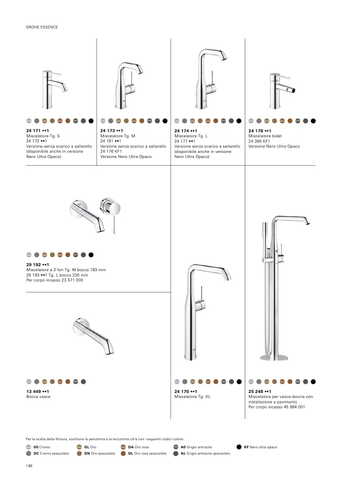 Per la scelta della finitura, sostituire la penultima e la terzultima cifra con i seguenti codici colore: