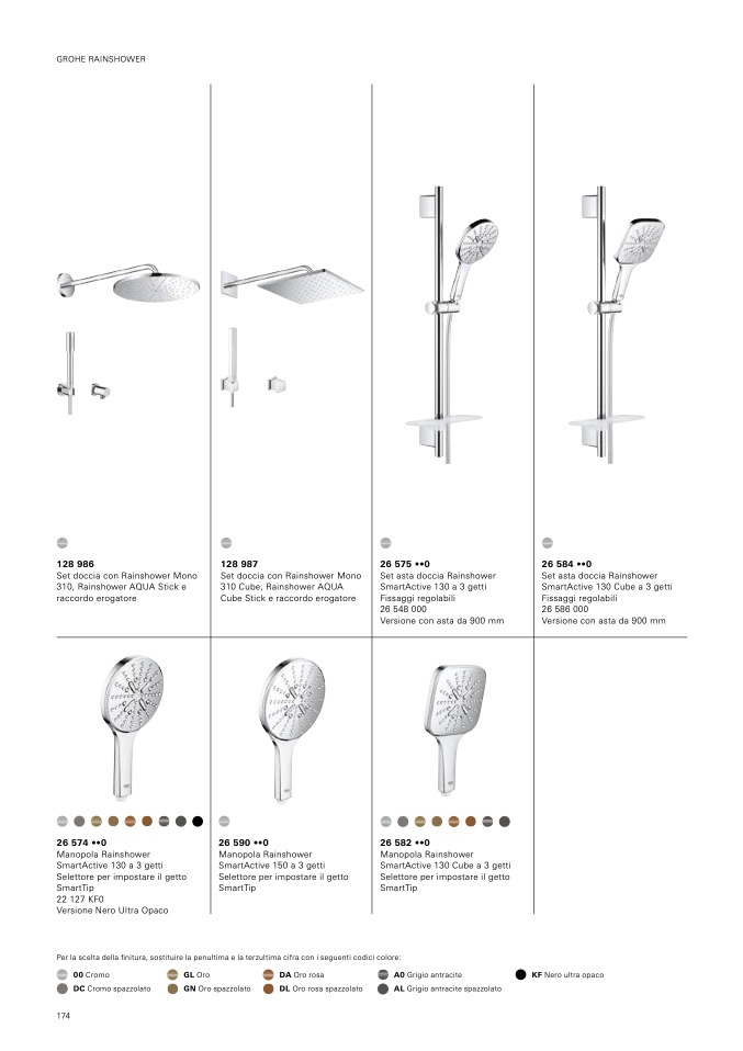Per la scelta della finitura, sostituire la penultima e la terzultima cifra con i seguenti codici colore: