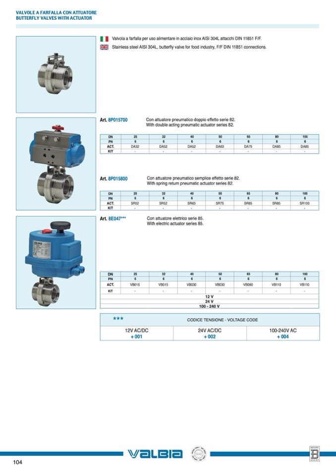 Valvola a farfalla per uso alimentare in acciaio inox AISI 304L attacchi DIN 11851 F/F.