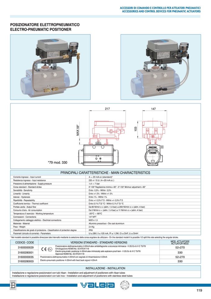 Installazione e regolazione posizionatori con tubi inox - Installation and adjustment of positioners with stainless steel tubes