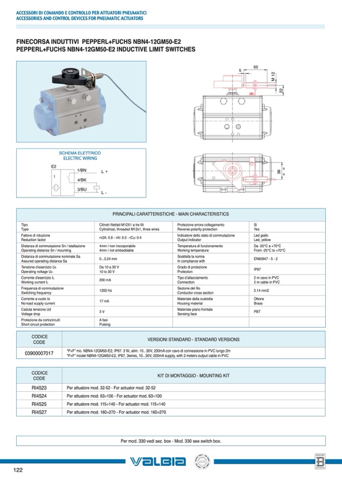 “P+F” mo. NBN4-12GM50-E2, IP67. 3 fili, alim. 10...30V, 200mA con cavo di connessione in PVC lungo 2m