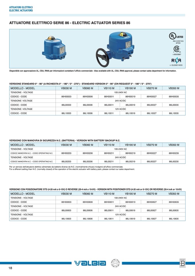 Disponibile con approvazione UL, CSA, RINA per informazioni contattare l’ufficio commerciale - Also avaliable with UL, CSA, RINA approval, please contact sales department for information.