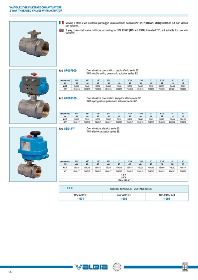 2 WAY THREADED VALVES WITH ACTUATOR