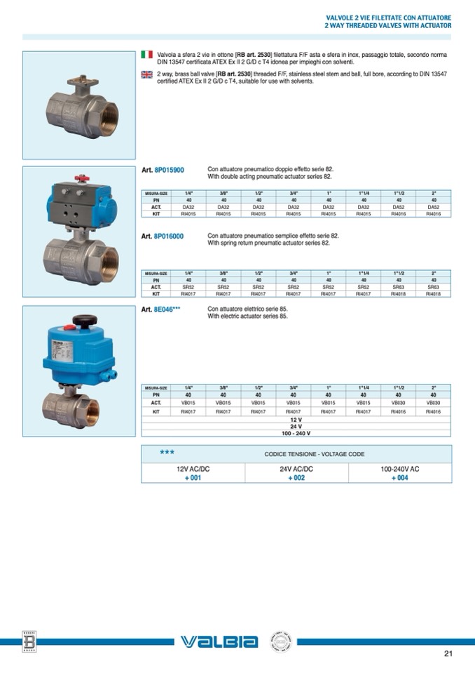 2 WAY THREADED VALVES WITH ACTUATOR