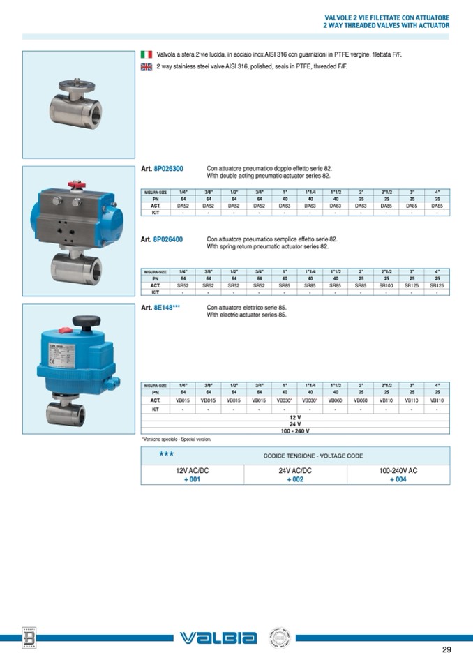 2 WAY THREADED VALVES WITH ACTUATOR