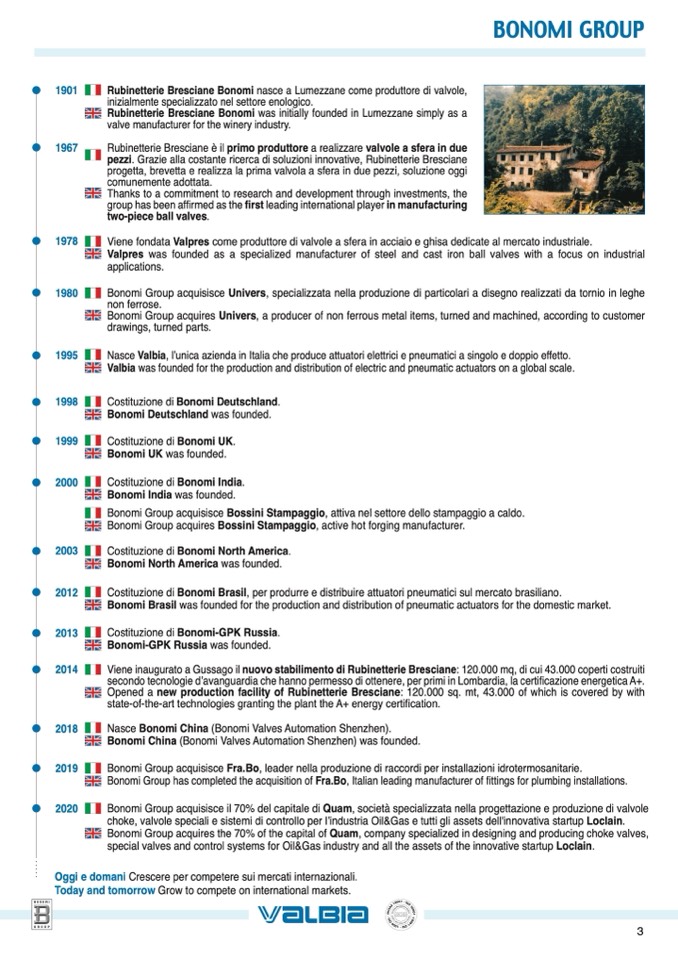 Bonomi Group acquisisce il 70% del capitale di Quam, società specializzata nella progettazione e produzione di valvole