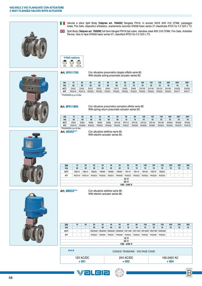 *TRUNNION Δ p=16 Bar.