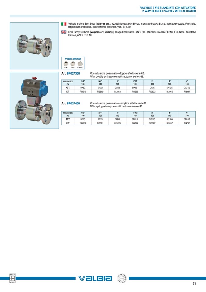 Con attuatore pneumatico doppio effetto serie 82.