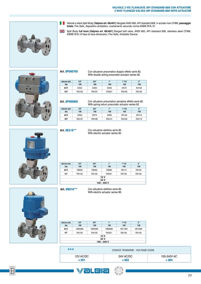 2 WAY FLANGED VALVES API STANDARD 608 WITH ACTUATOR