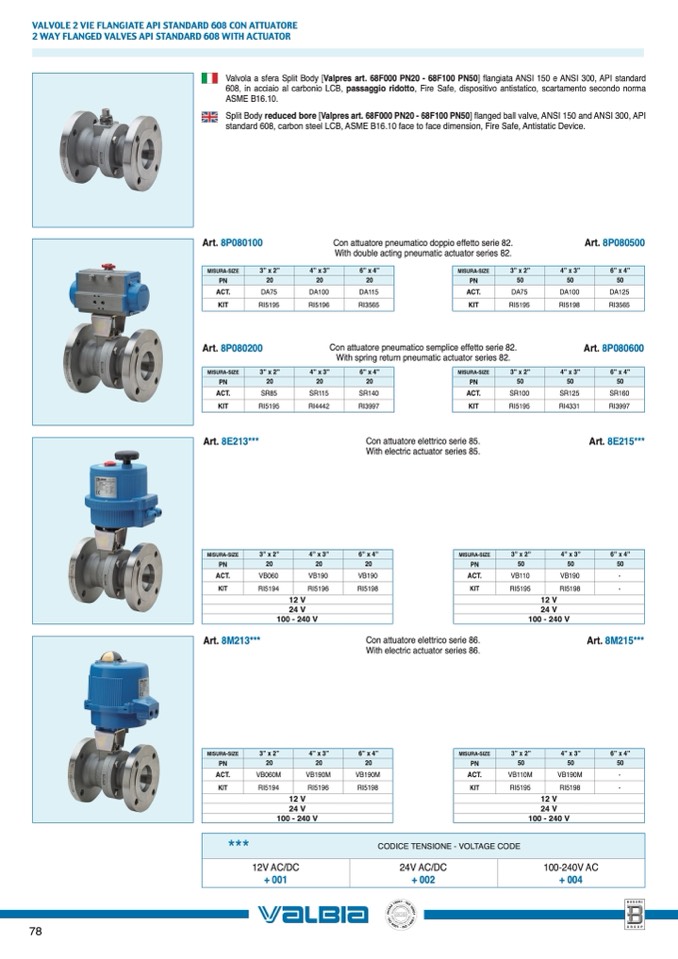 VALVOLE 2 VIE FLANGIATE API STANDARD 608 CON ATTUATORE