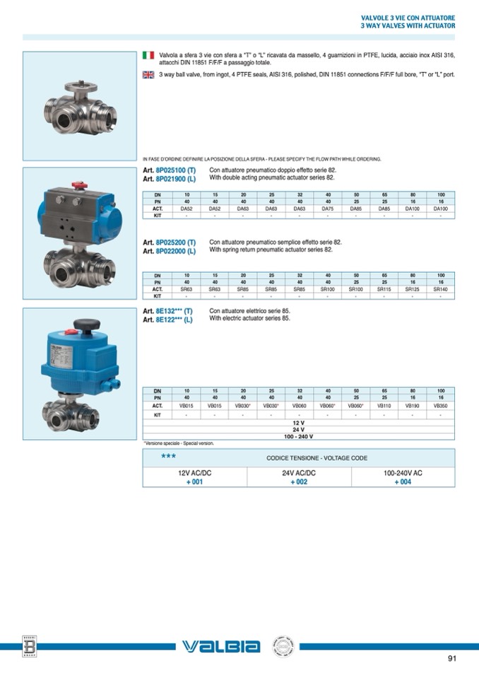 3 way ball valve, from ingot, 4 PTFE seals, AISI 316, polished, DIN 11851 connections F/F/F full bore, “T” or “L” port.