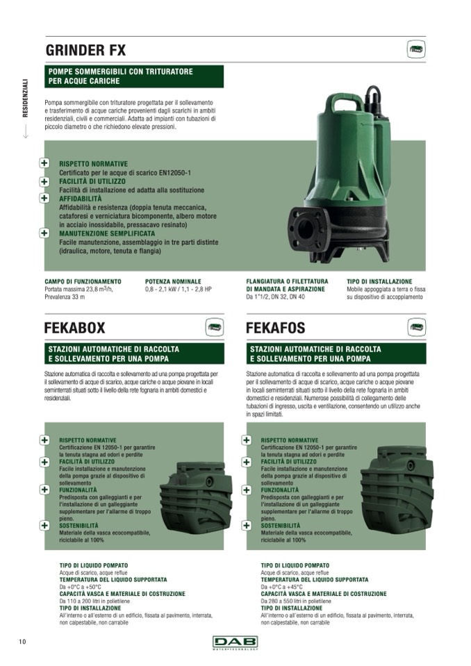 per il sollevamento di acque di scarico, acque cariche o acque piovane