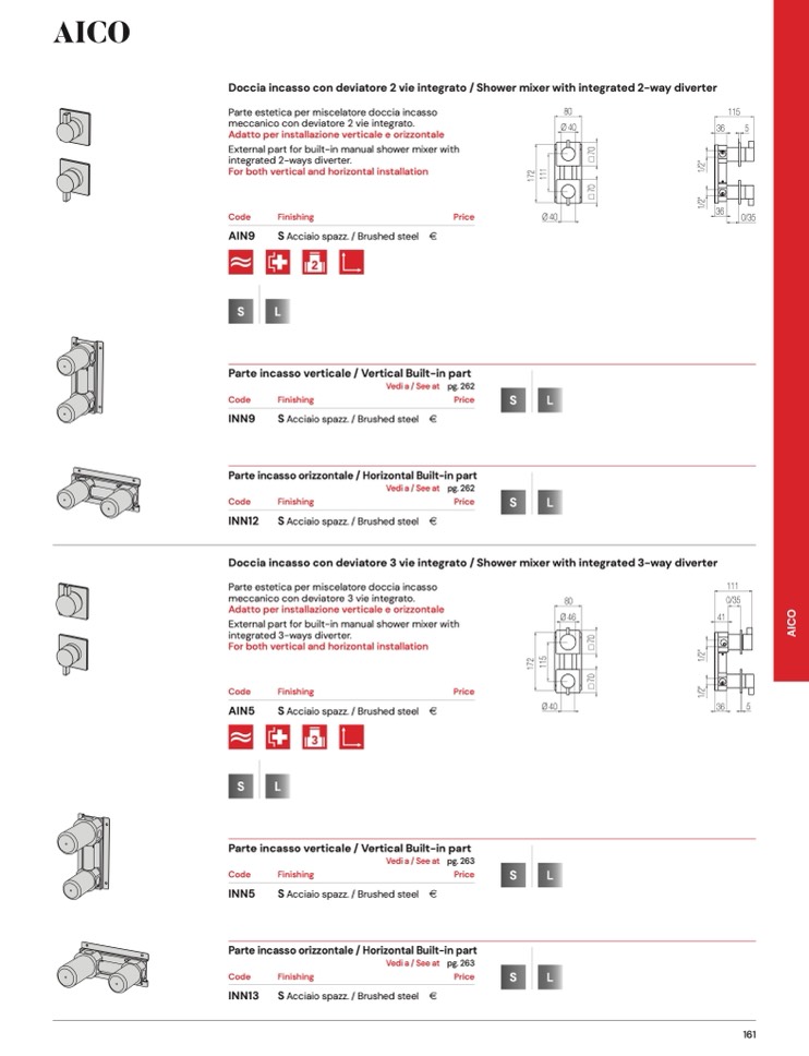 Doccia incasso con deviatore 2 vie integrato / Shower mixer with integrated 2-way diverter