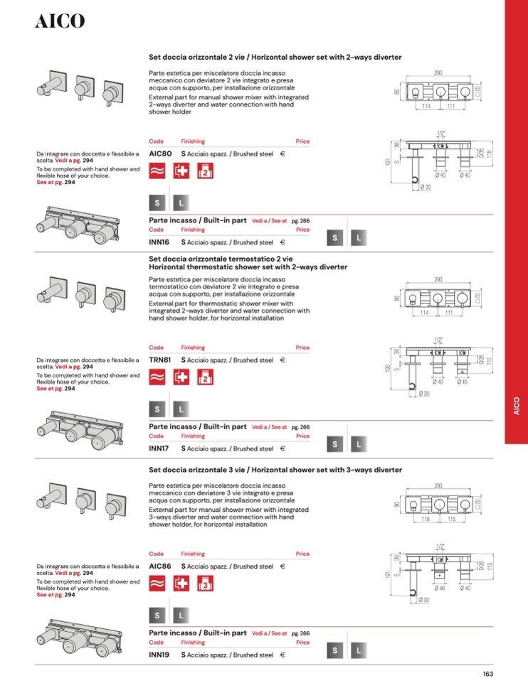 Set doccia orizzontale 3 vie / Horizontal shower set with 3-ways diverter