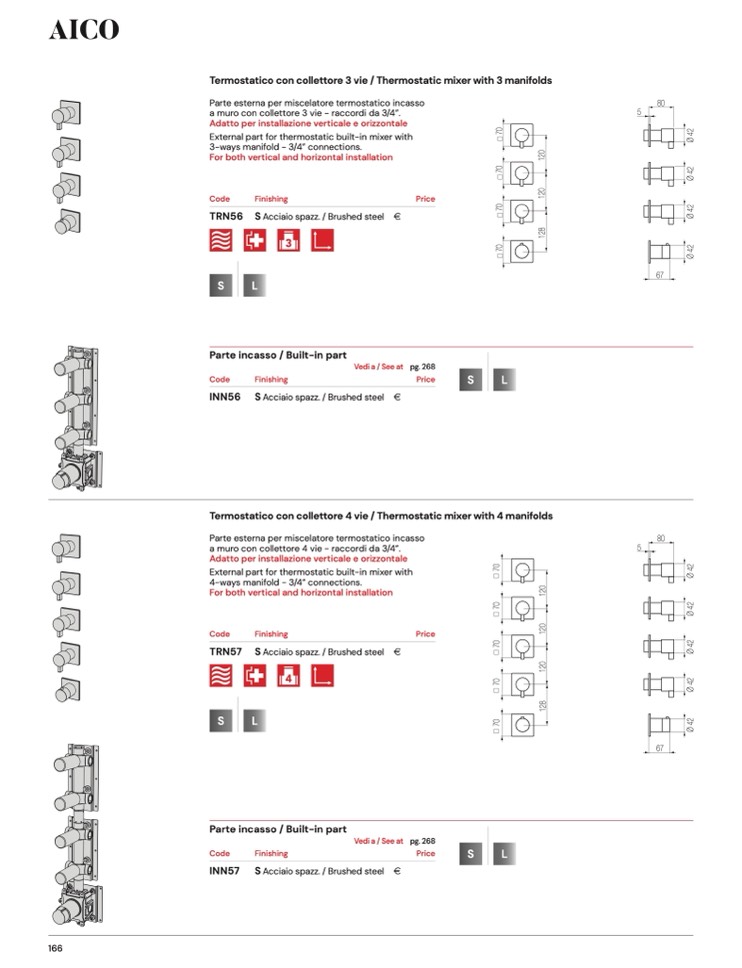 a muro con collettore 4 vie - raccordi da 3/4”.