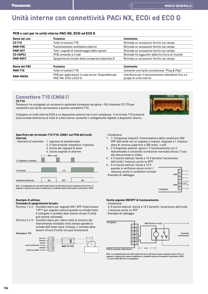 Specifiche del terminale T10 (T10: CN061 sul PCB dell'unità