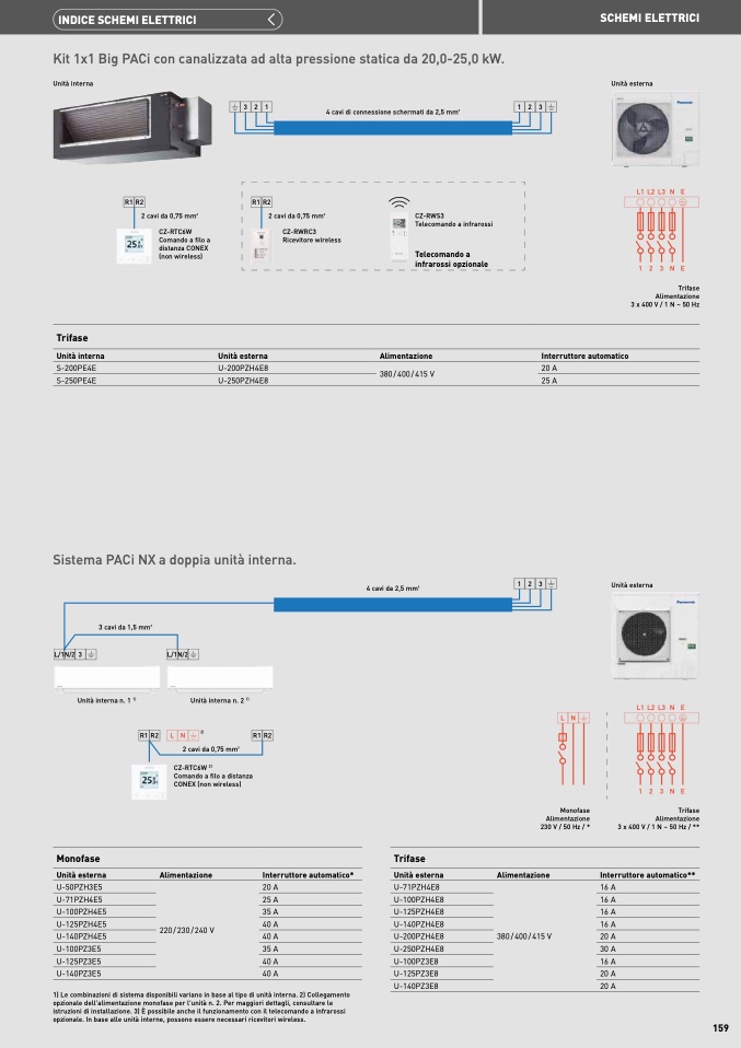 1) Le combinazioni di sistema disponibili variano in base al tipo di unit