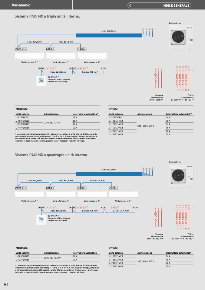 1) Le combinazioni di sistema disponibili variano in base al tipo di unit