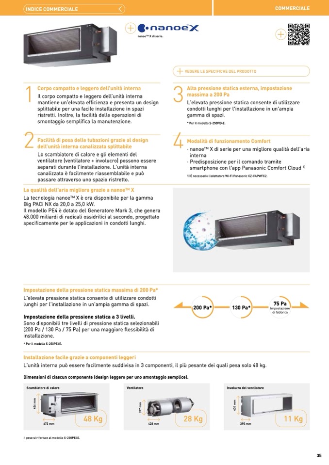 L'unità interna può essere facilmente suddivisa in 3 componenti, il più pesante dei quali pesa solo 48 kg.