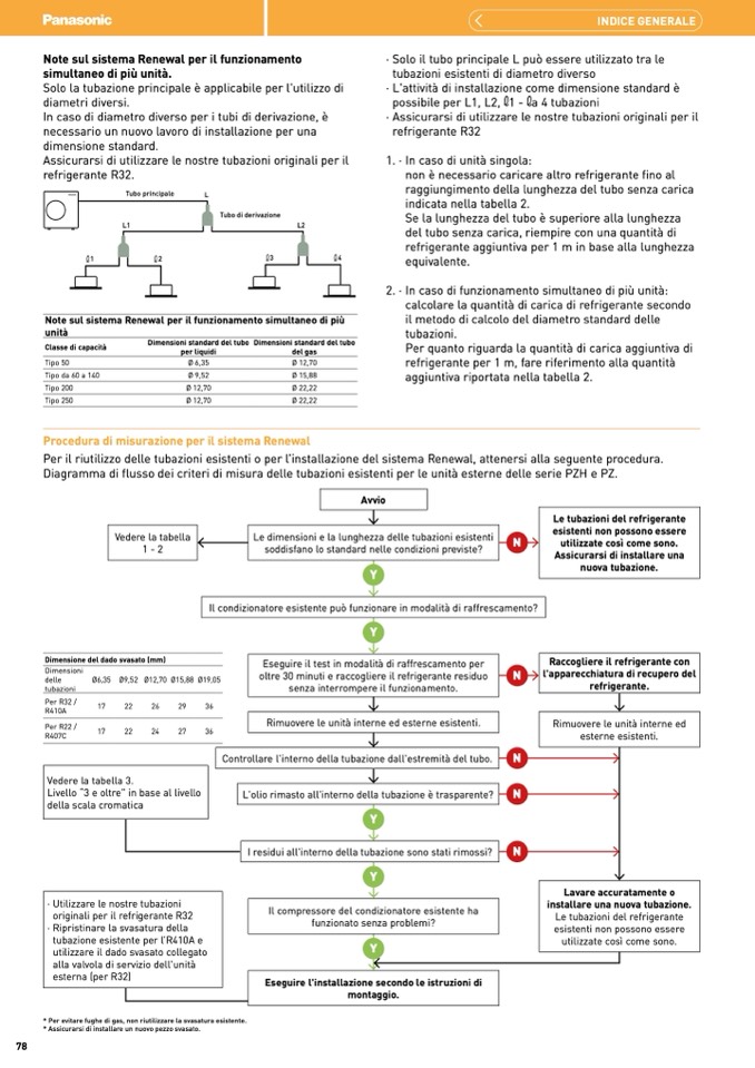 Le dimensioni e la lunghezza delle tubazioni esistenti