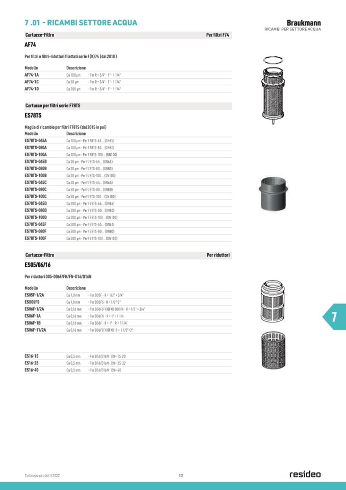 Per filtri e filtri-riduttori filettati serie F(K)74 (dal 2010 )