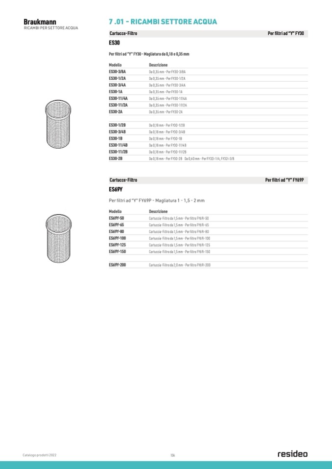 Per filtri ad “Y” FY30 - Magliatura da 0,18 e 0,35 mm