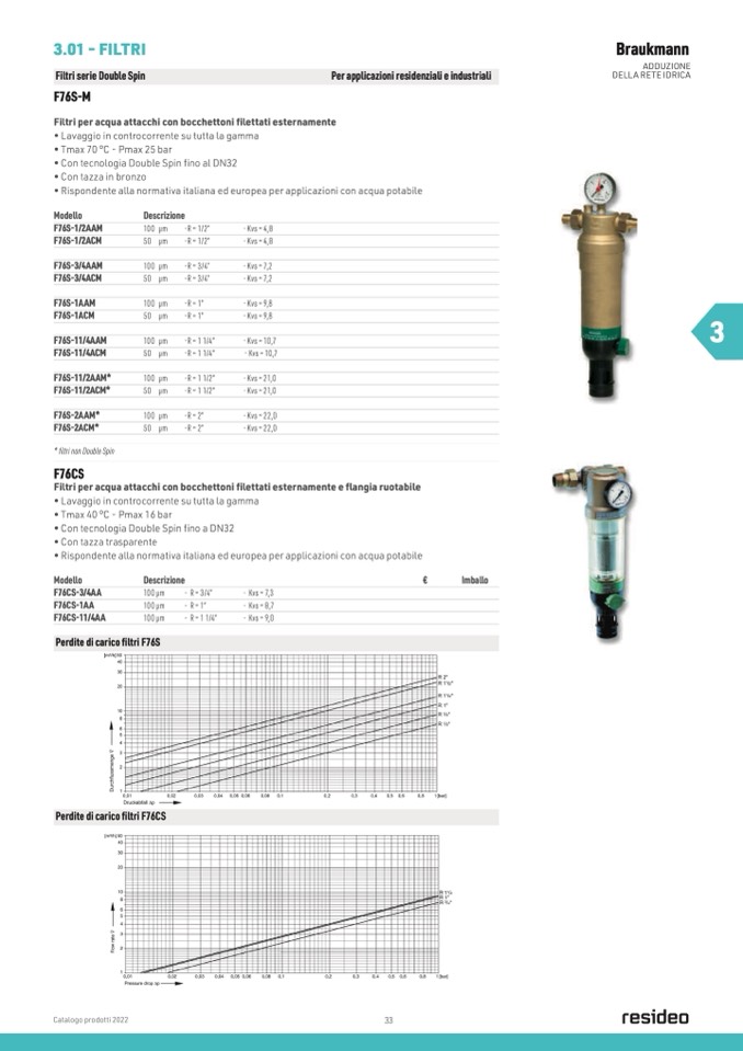Filtri per acqua attacchi con bocchettoni filettati esternamente