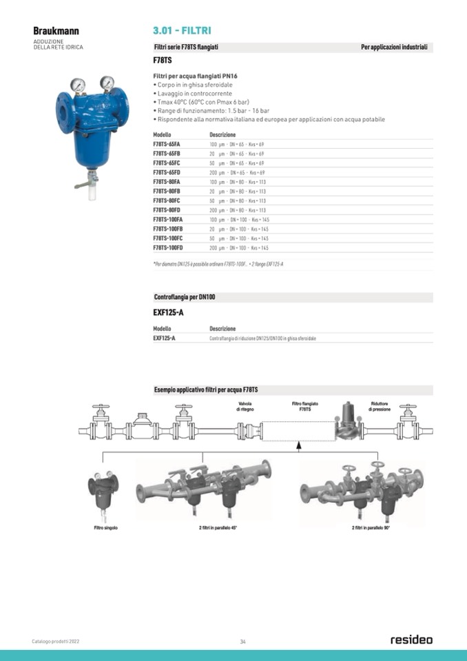 *Per diametro DN125 è possibile ordinare F78TS-100F... + 2 flange EXF125-A