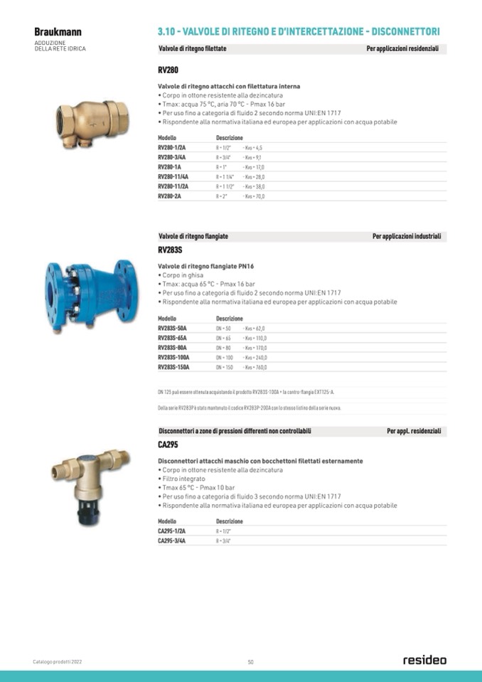 • Per uso fino a categoria di fluido 3 secondo norma UNI:EN 1717