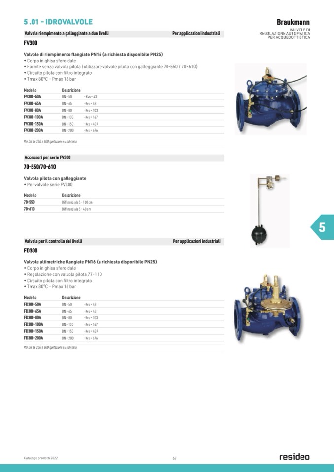 Valvole altimetriche flangiate PN16 (a richiesta disponibile PN25)