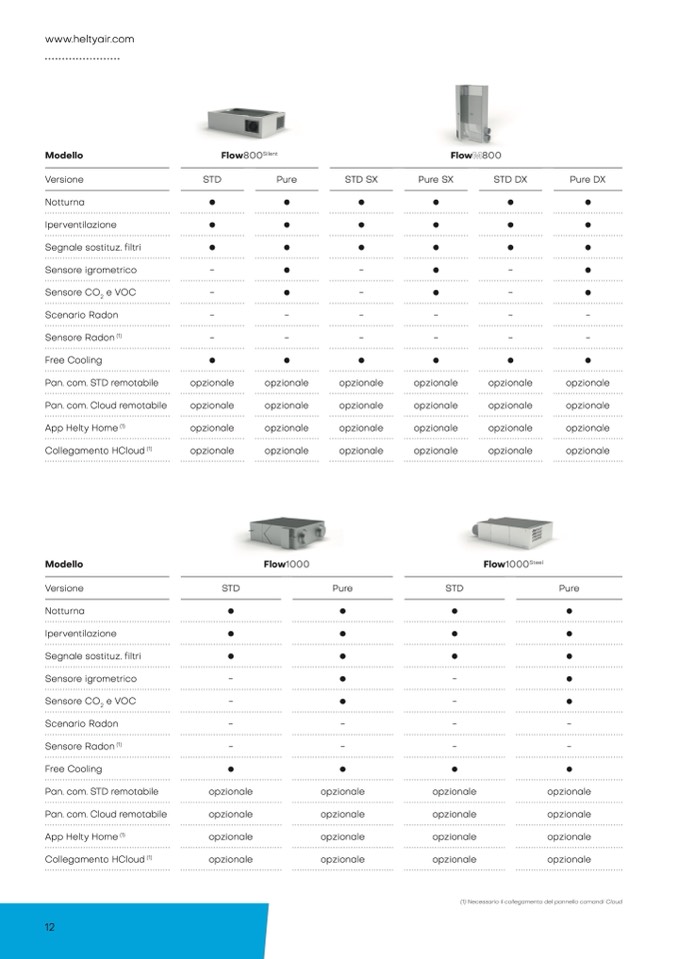 (1) Necessario il collegamento del pannello comandi Clou