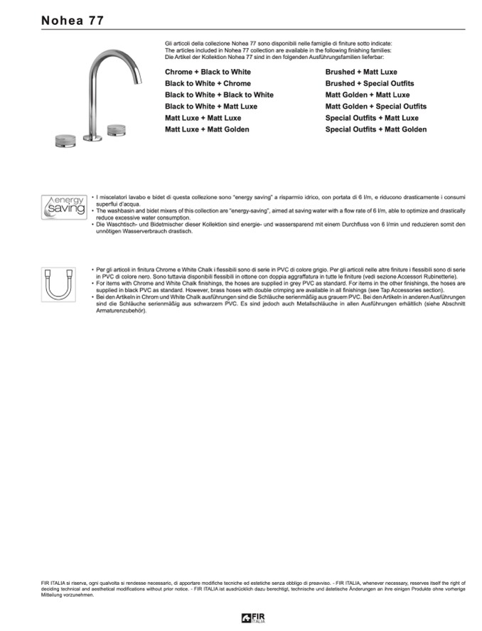 FIR ITALIA si riserva, ogni qualvolta si rendesse necessario, di apportare modifiche tecniche ed estetiche senza obbligo di preavviso. - FIR ITALIA, whenever necessary, reserves itself the right of