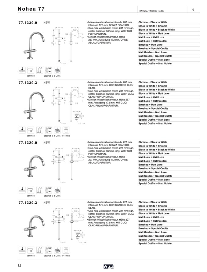 • Miscelatore lavabo monoforo h. 227 mm,